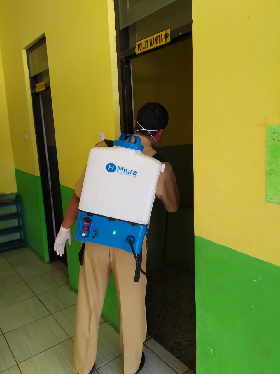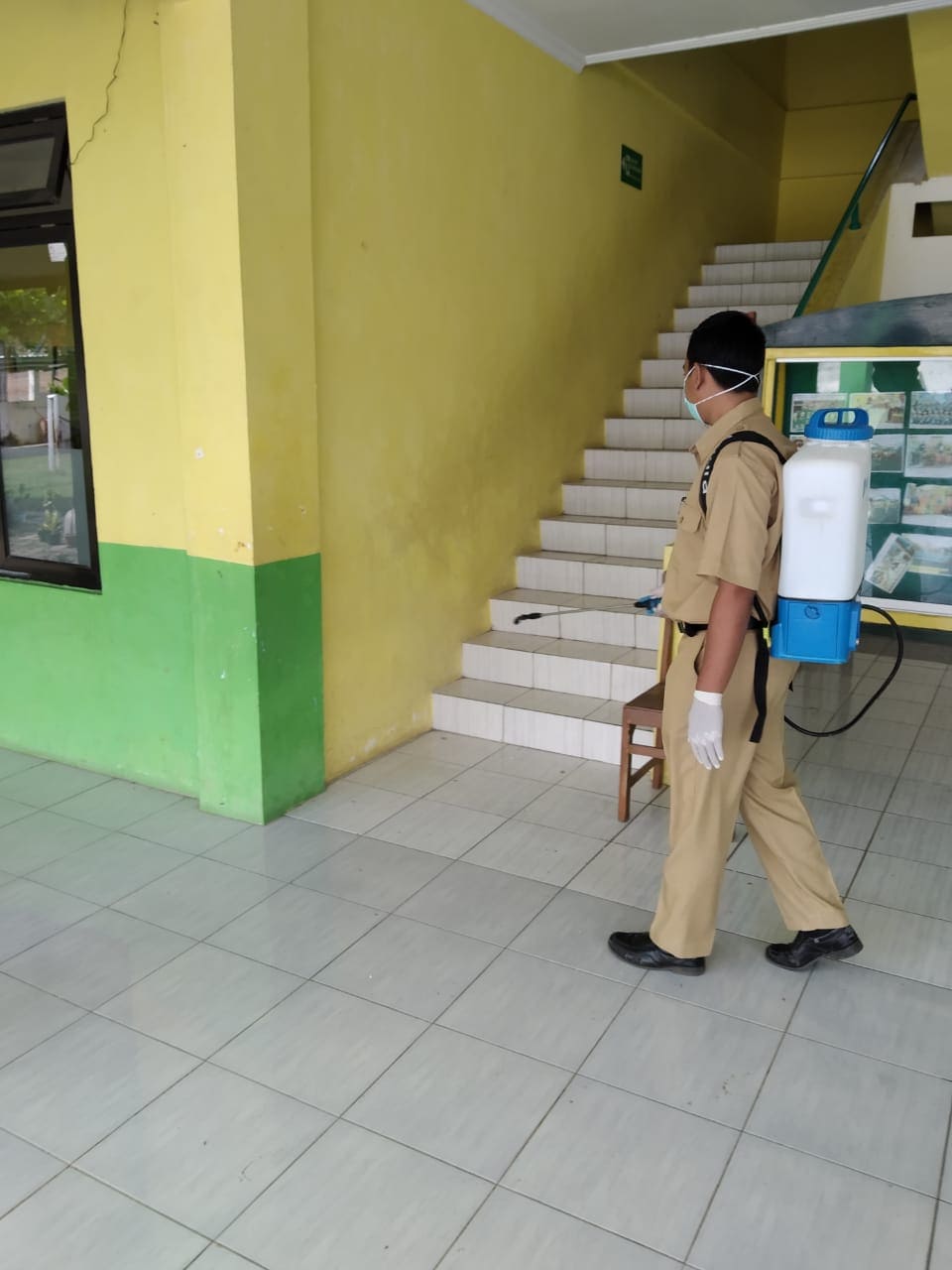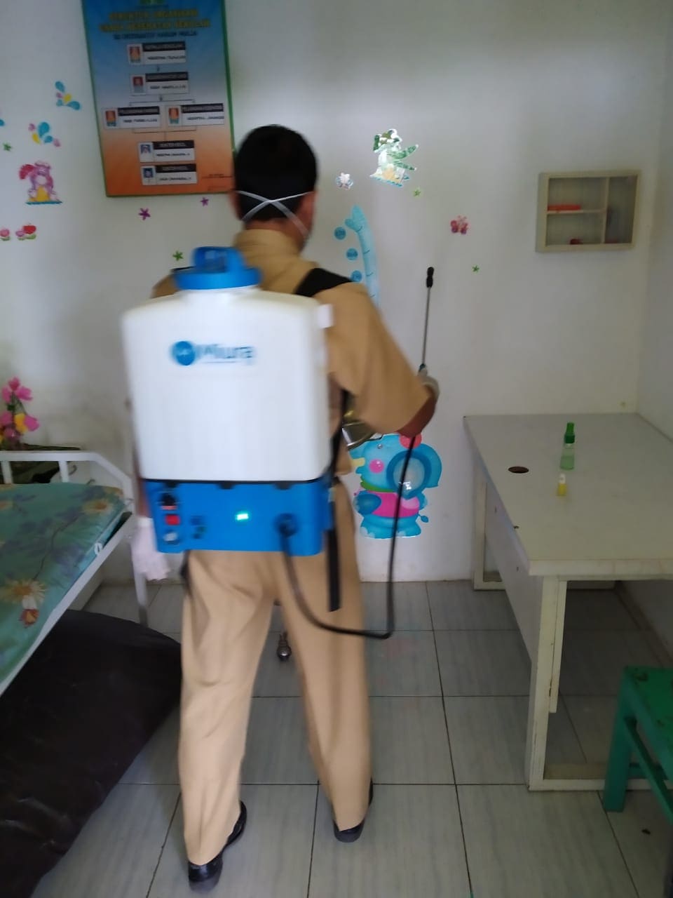 Senin (23/03/20) Kegiatan pembersihan ruangan dan lingkungan kegiatan belajar mengajar dengan cairan disinfektan oleh guru-guru SD Interaktif Harum Mulia.