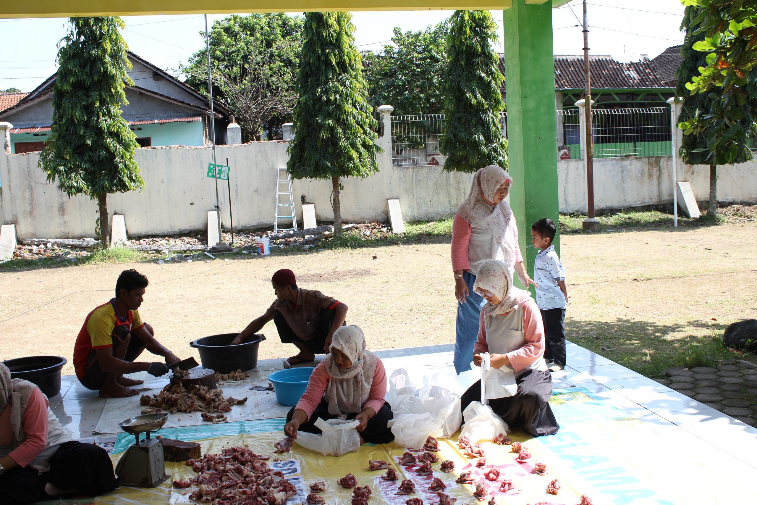 Setelah pemotongan dan proses penimbangan, daging kurban didistribusikan kepada warga masyarakat sekitar lingkungan sekolah.