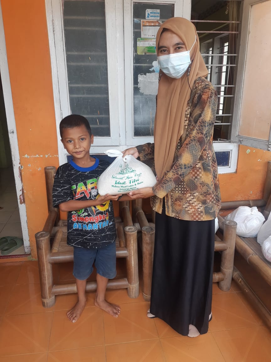 Penyaluran zakat fitrah dari siswa/siswi SD Interaktif Harum Mulia ke daerah Karanganom, Socakangsi, Polanharjo, Kayumas, dan Bandungan.